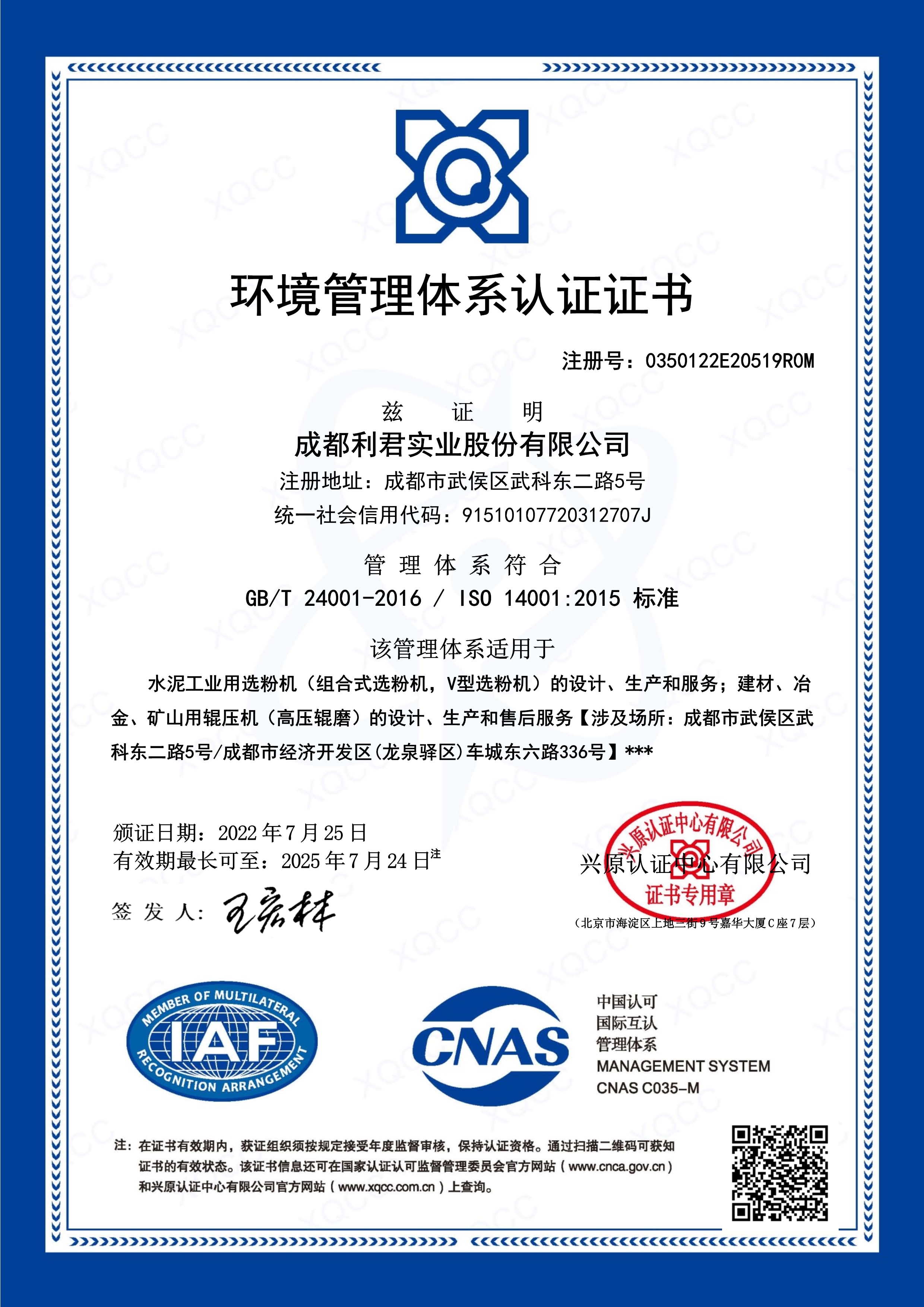 公司通過了ISO9001質(zhì)量管理體系、IOS14001環(huán)境管理體系和CE認(rèn)證,積極推行全面質(zhì)量管理。先后獲得了“中國建材機(jī)械工業(yè)企業(yè)信用評(píng)價(jià)AAA級(jí)”、“四川省質(zhì)量管理先進(jìn)企業(yè)”、“四川省建設(shè)創(chuàng)新型企業(yè)”、“四川省質(zhì)量信用AAA用戶”等多項(xiàng)榮譽(yù)和資質(zhì)證書。