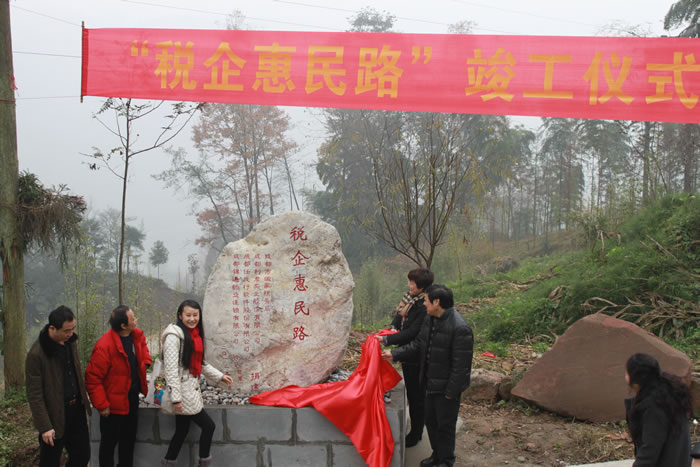 竣工儀式上,馬家社區(qū)村委向市局和三家捐贈(zèng)企業(yè)回贈(zèng)了錦旗,文井江鎮(zhèn)鎮(zhèn)長(zhǎng)廖強(qiáng),代表鎮(zhèn)黨委、政府致了答謝講話。曾組長(zhǎng)代表市局和三家捐贈(zèng)企業(yè),希望馬家社區(qū)切實(shí)把“稅企惠民路”養(yǎng)護(hù)好、使用好,切實(shí)讓“稅企惠民路”變成社區(qū)群眾實(shí)現(xiàn)黨的十八大提出的“建成小康社會(huì)”宏偉目標(biāo)的致富路。